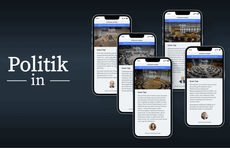 Relevante Landespolitik, kompakt und verständlich aufbereitet: Der Newsletter „Politik in“ bietet werktäglich fundierte Analysen, Hintergründe und Einordnungen zum politischen Geschehen im jeweiligen Bundesland. Ideal für politisch interessierte Leserinnen und Leser sowie alle, die beruflich mit Politik zu tun haben.