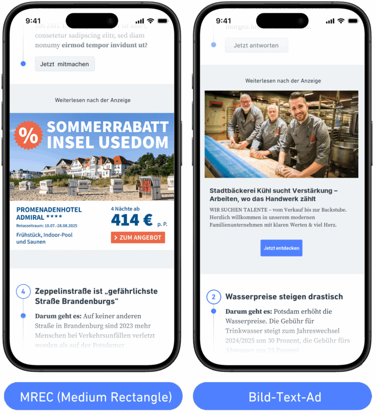 Ihre Anzeige erscheint im glaubwürdigen, redaktionellen Umfeld – das genießt hohes Vertrauen und steigert die Klick-Bereitschaft.